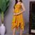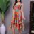Effortlessly stylish dress with a vibrant abstract print, tie-up shoulder straps, and a chic high-low handkerchief hemline ? perfect for casual days or evening gatherings.