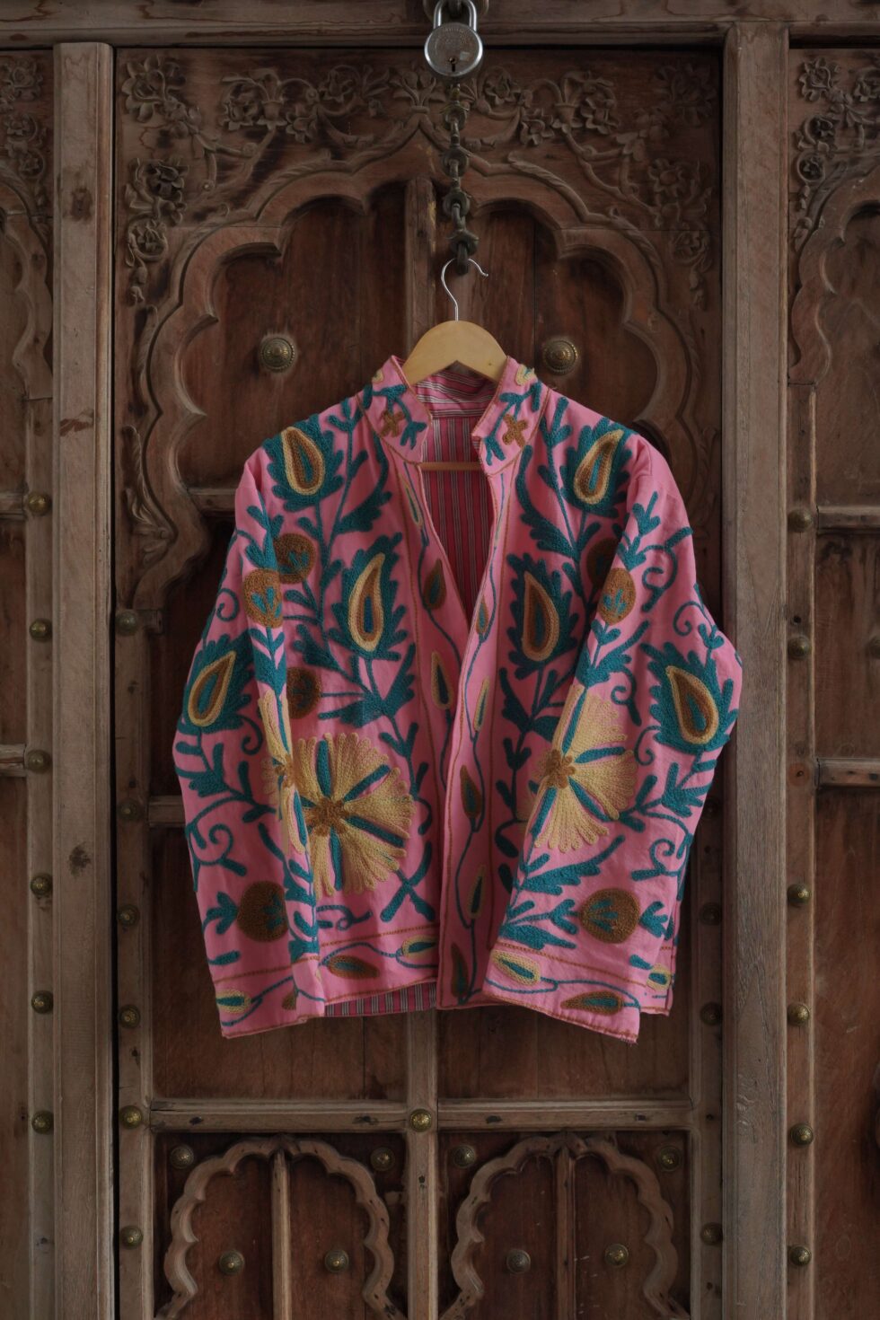 Luxurious velvet jacket featuring intricate Suzani embroidery. Perfect blend of elegance and tradition โ€” ideal for festive and ethnic occasions.
