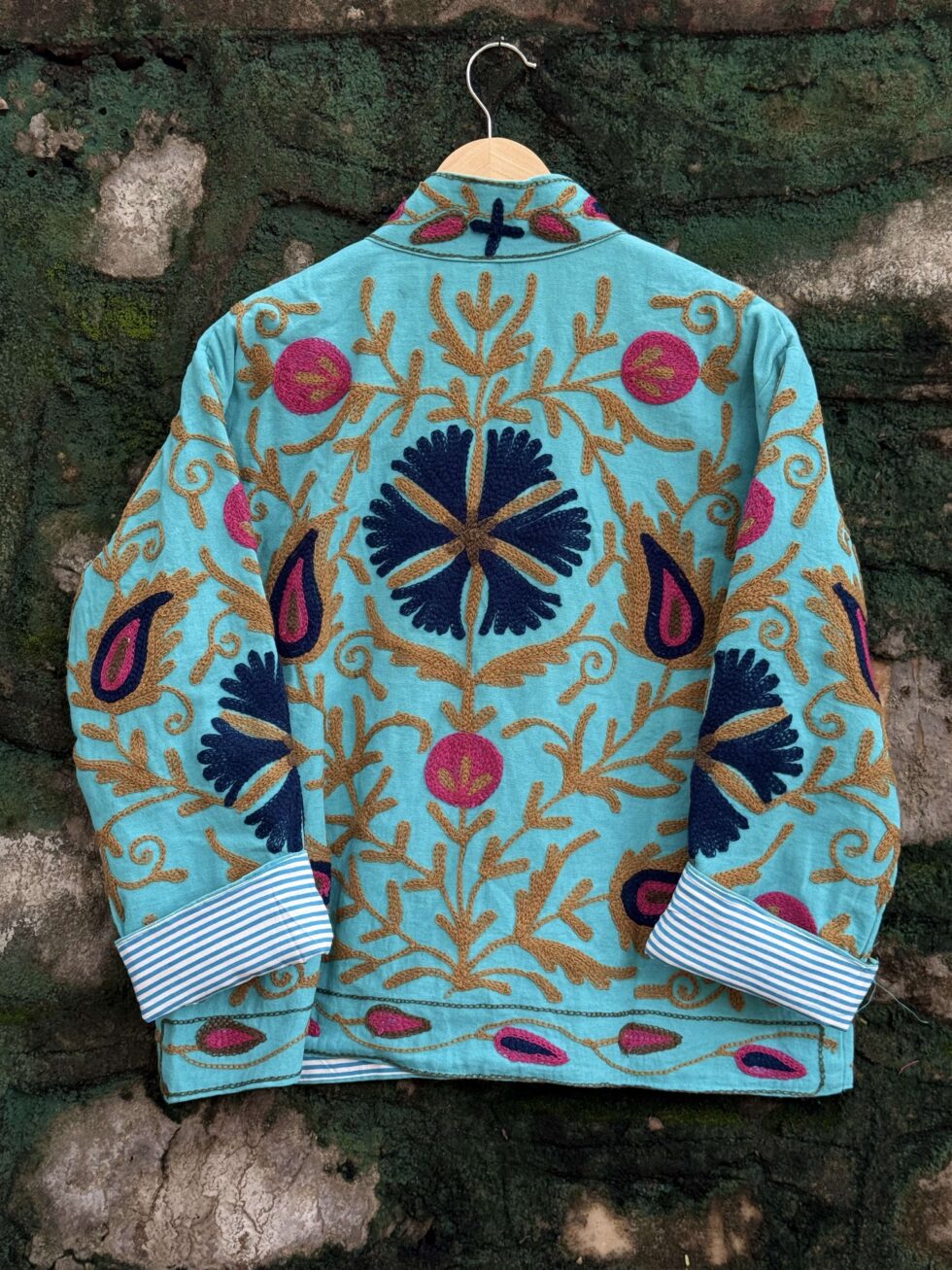 Luxurious velvet jacket featuring intricate Suzani embroidery. Perfect blend of elegance and tradition β€” ideal for festive and ethnic occasions.